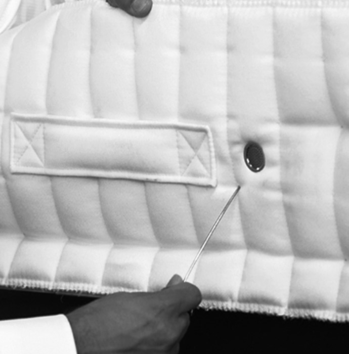 通過雙線深度縫合,一方面確保墊芯連接緊密不變形,另一方面可以保證各種材料有不影響發(fā)揮作用的充足合理空間。